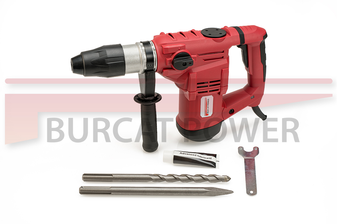 Accesorios incluidos: Empuñadura lateral, Limitador de profundidad, Brocas, Cincel, Punta, plano Llave de dos puntas, Tapa antipolvo, grasa.